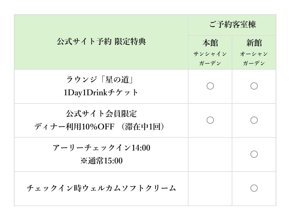 ※公式サイト会員限定特典はご宿泊のご予約完了までに会員登録をお済ませください。日帰りのご利用では適用されません。会員登録はこちら